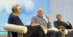 Gates chuckled and said “alright,” before returning to the discussion. “I think Steve and I almost cared too much, and our life was the company, and Satya has this ability to care as much as we did, but with more of a team,” he said.