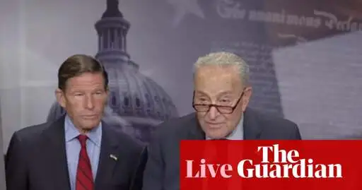 Senate Democrat leader says attempt to force release of Epstein files not a ‘stunt’ but effort to ‘compel transparency’ – US politics live