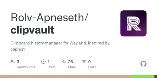 GitHub - Rolv-Apneseth/clipvault: Clipboard history manager for Wayland, inspired by cliphist