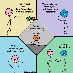 [blue, confused] Whait what do you mean by that, this isn't a racist statement?