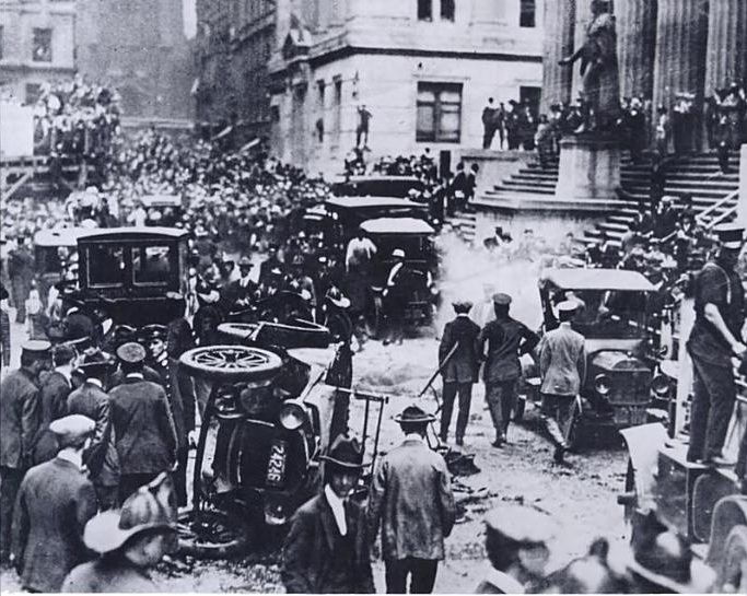 Image: The aftermath of the Wall Street Bombing, 1920 [Wikipedia]