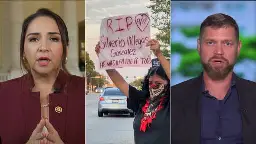 ICE stopped a man right after he dropped off his child at school, because he’s Brown, because maybe he looked like he worked a minimum-wage job, and then shot him to death,” says Congressmember Delia Ramirez, a Democrat from Illinois, who is calling for a full investigation into Villegas Gonzales’s death and for ICE to be defunded. “The footage, the witnesses we have talked to do not match what the ICE reports show,” she says, calling ICE a “terror organization” with “no guardrails.”