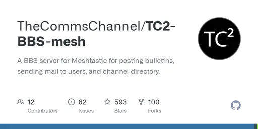 GitHub - TheCommsChannel/TC2-BBS-mesh: A BBS server for Meshtastic for posting bulletins, sending mail to users, and channel directory.
