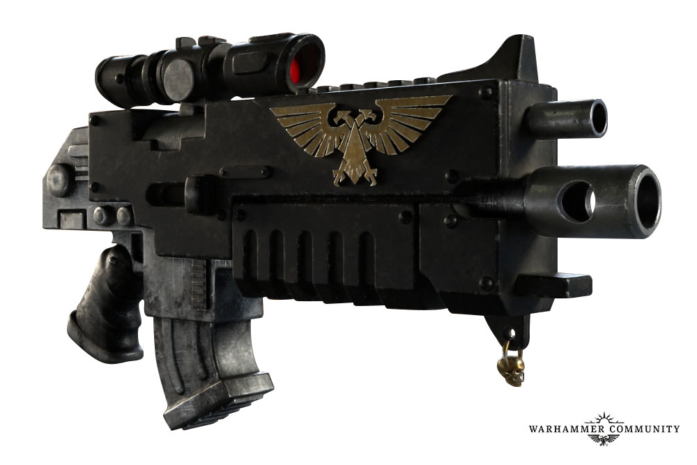 Boltguns, and esspecially the bolt rifle from Warhammer 40k - specifically because its so massive and brutalist in design to look intimidating.