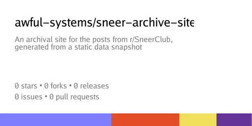 the r/SneerClub archive at awful.systems is welcoming contributors. it's a statically-generated site (from this set of archived posts in JSON format) that uses a unique, high-performance Nix-based static site generation system. the current site desperately needs a new stylesheet (especially on mobile), but one area where I really need advice or contributions is the dataset.