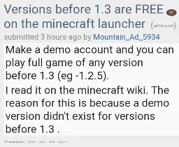 :0 that's interesting | Versions before 1.3 are FREE on the minecraft launcher